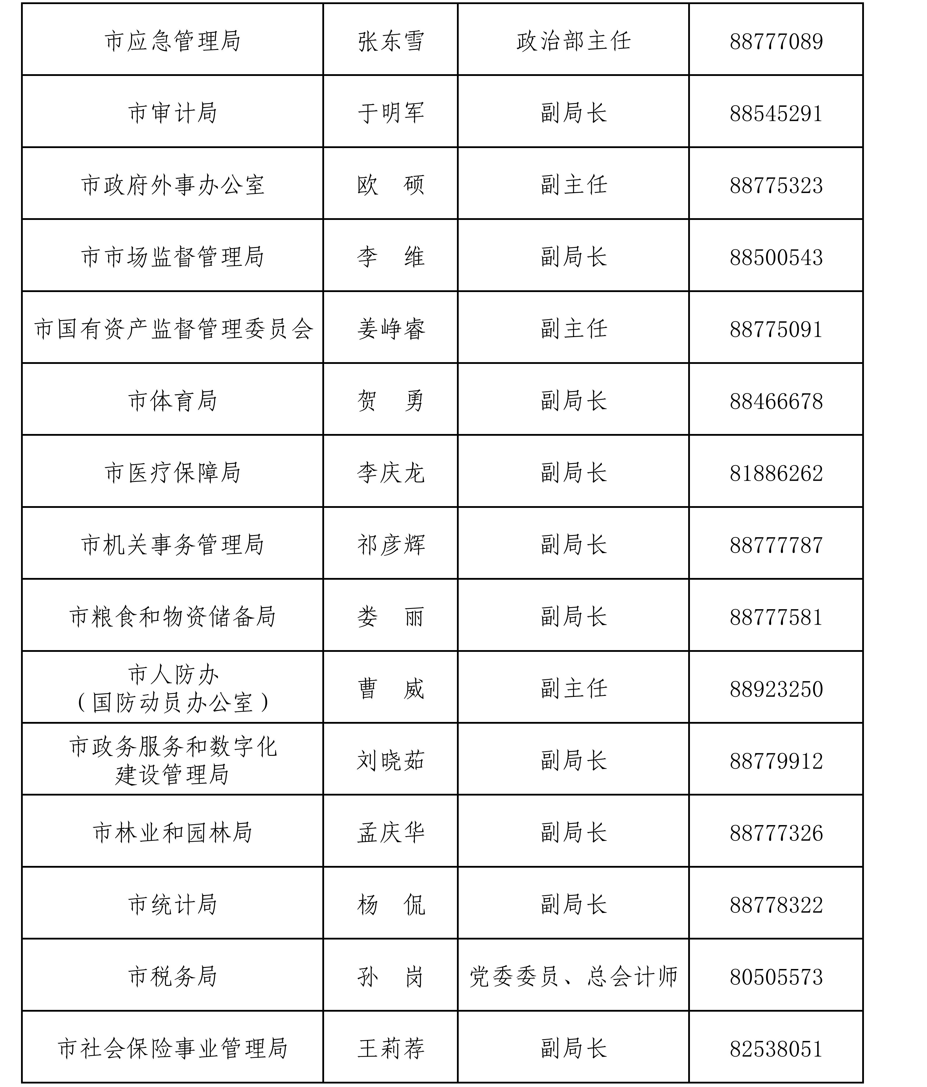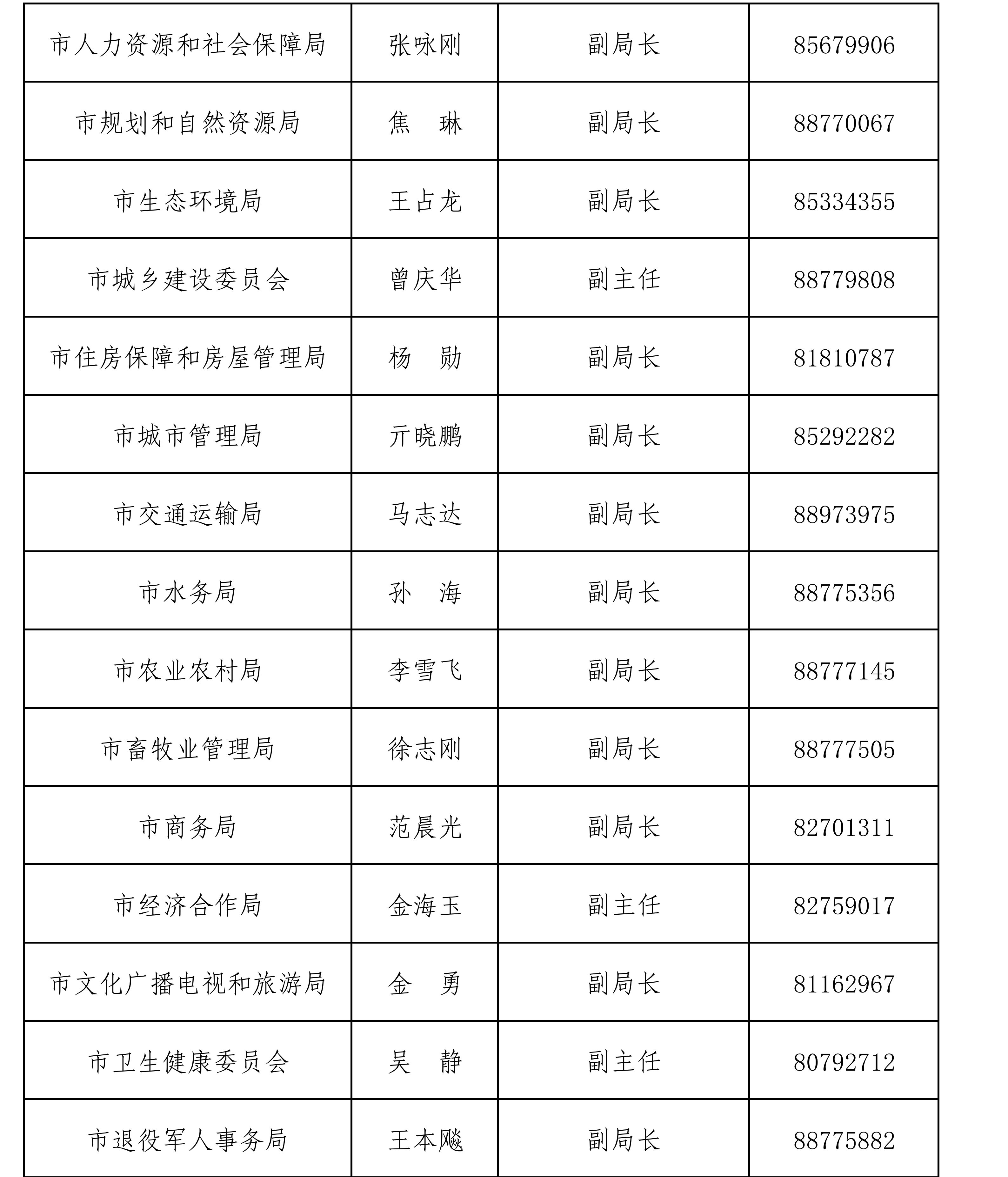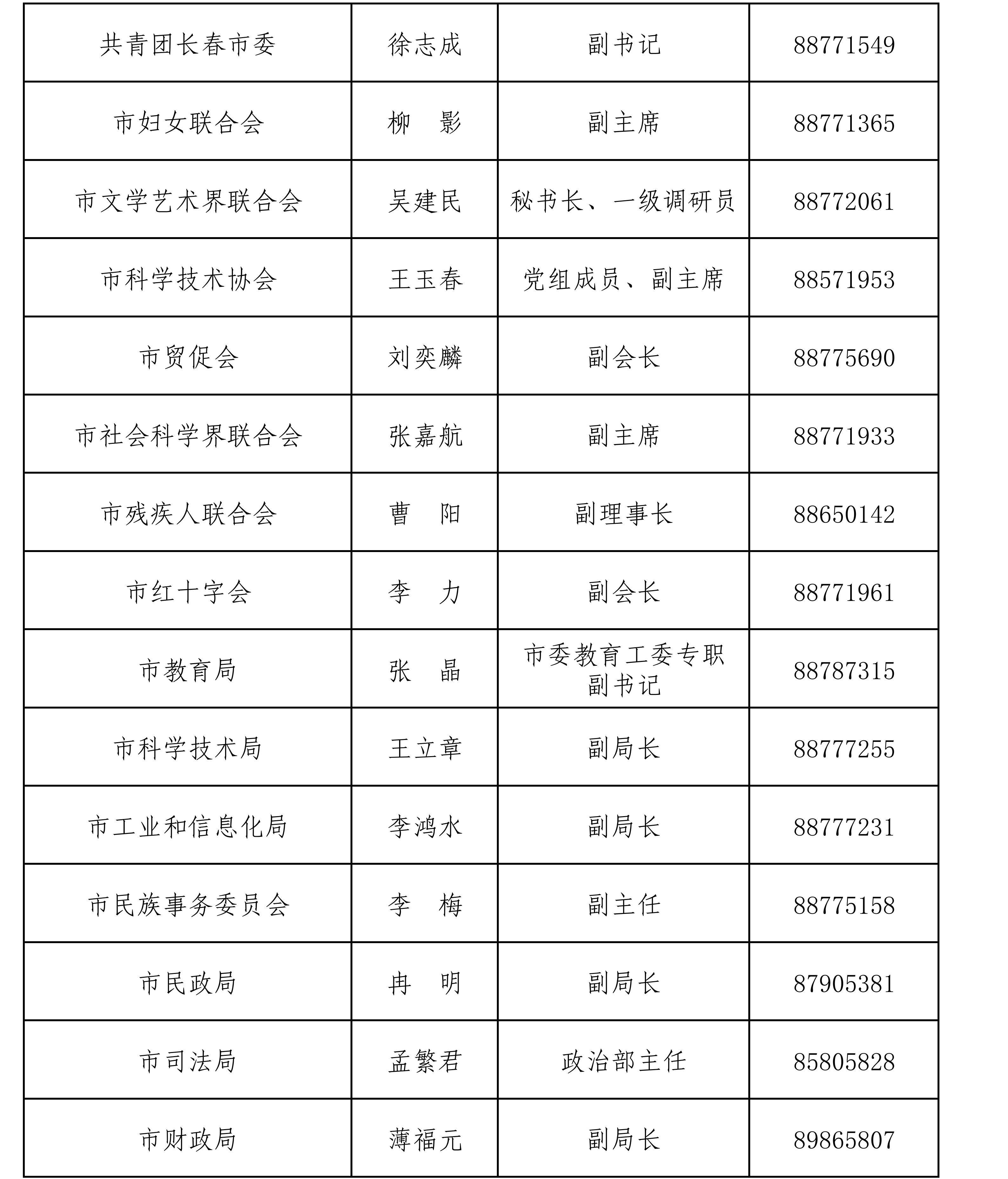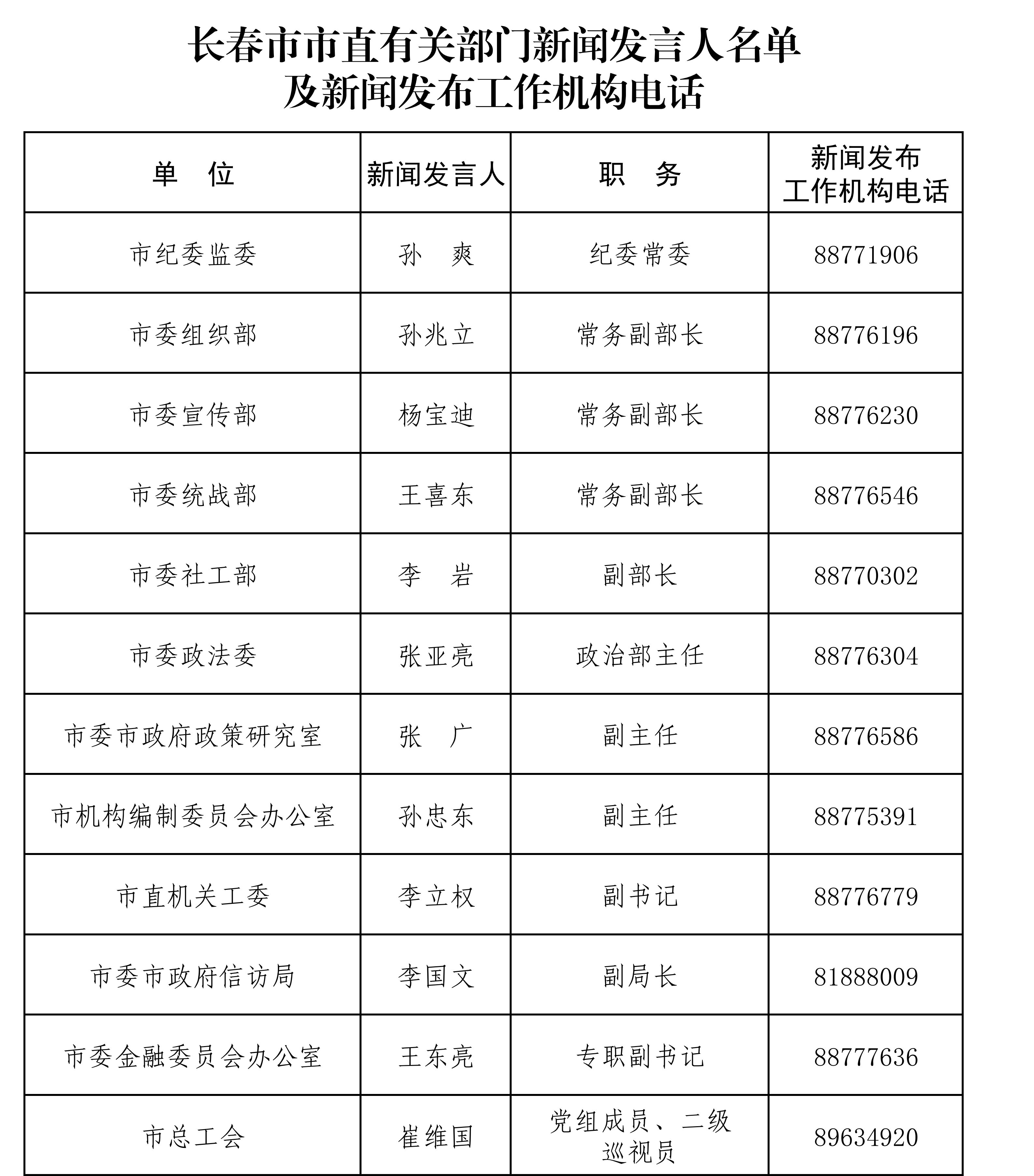 长春市市直有关部门新闻发言人名单及新闻发布工作机构电话